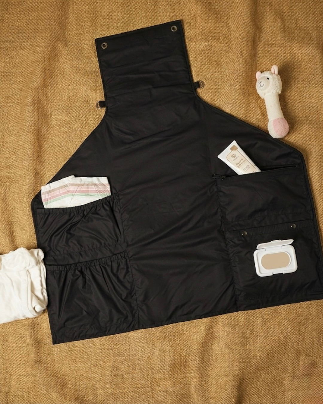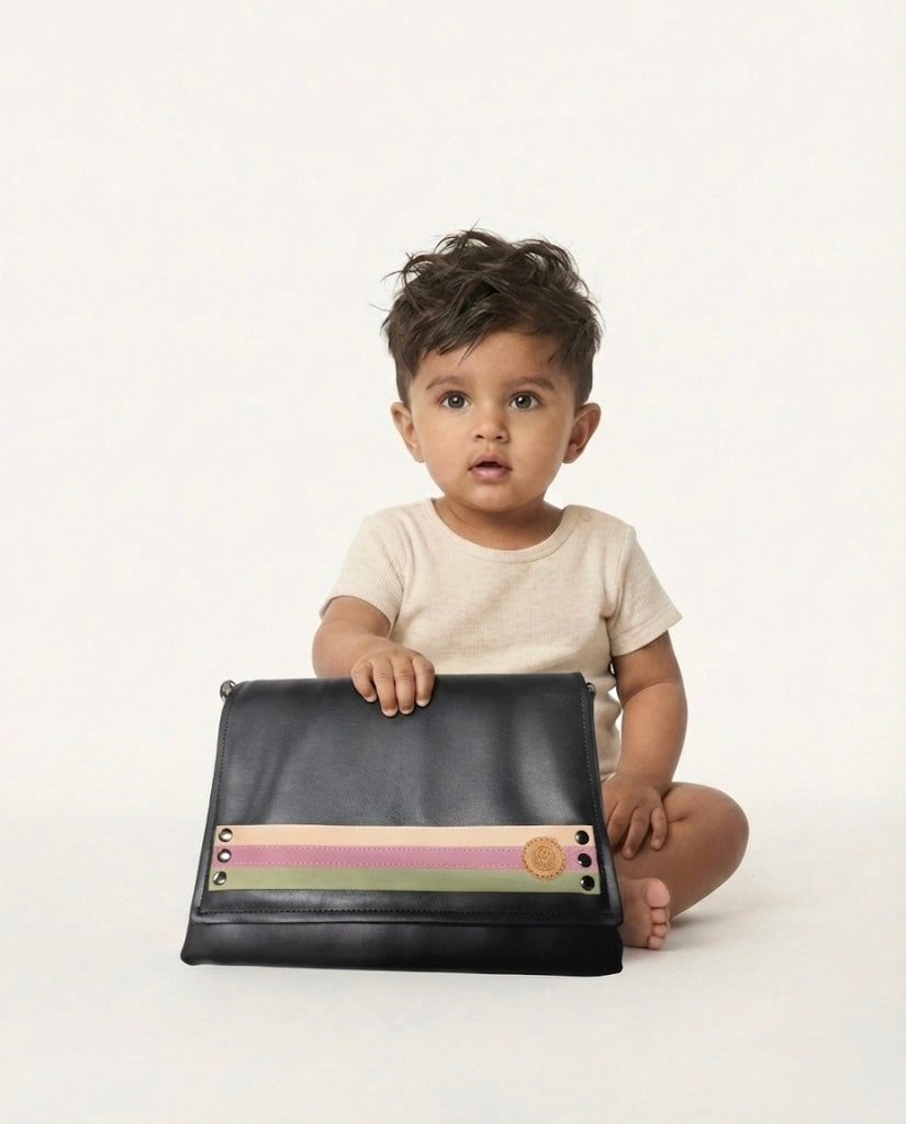 Portia is inspired by age-old Indian parenting wisdom, rooted in the belief that caregiving should be intentional, uncluttered, and balanced. Unfold it and every essential settles into its quiet place: diapers, wipes, creams & spare outfits, all tucked in neatly to help parents be always ready when stepping out into the world with their little ones.